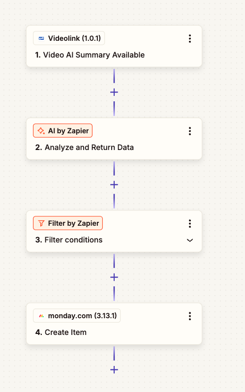 This integration allows you to automatically create items in Monday.com from Videolink video summaries.
